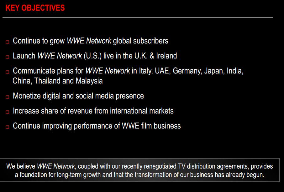 - We've been promised a turn-around for the WWE film business since 2012. How is that going? Is it really worth supporting this initiative along with the WWE Network costs? How does the new deal with WB play into this?
