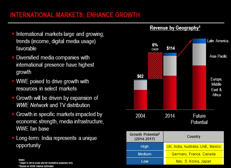 Where WWE has identified for greatest potential international growth: UK, India, Australia, the UAE and Mexico.