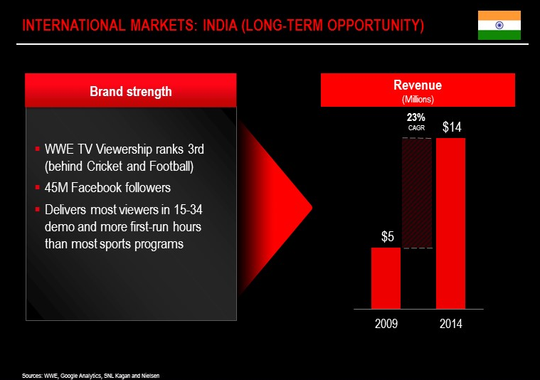 The $14M that India generated in 2014 was solely from TV rights and that is before the latest deal began. India is WWE's 3rd largest int'l market solely off TV rights. There was "infinitesimal Consumer products" revenue.