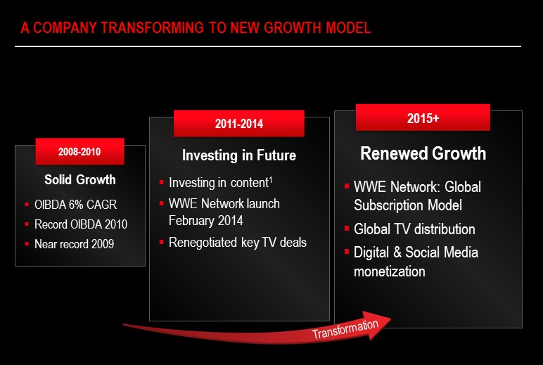 Barrios characterizes the 2011-2014 as "deep investment cycle wrapped around monetizing WWE IP across variety of emerging platforms".