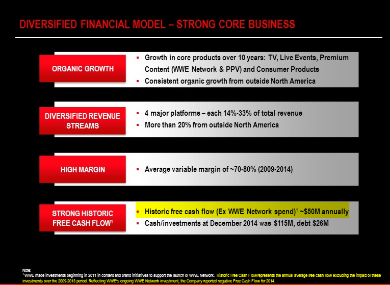 (Worth calling out the footnote noting admitting that 2014 had "negative cash flow" and also that WWE recently took a $50M pre-payment from a TV partner for cash.)