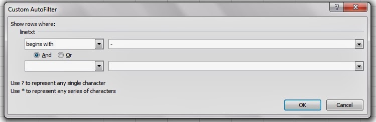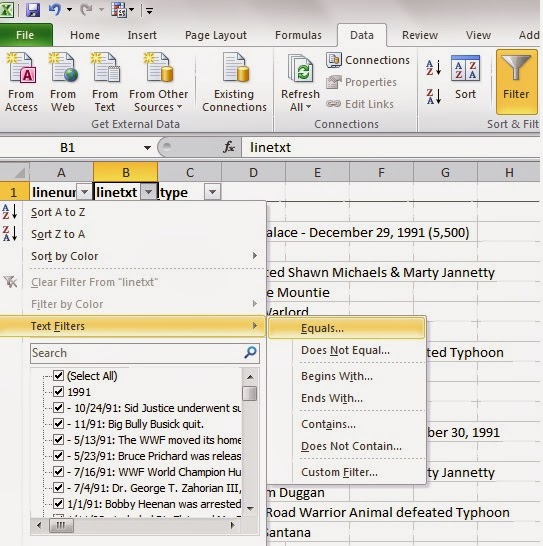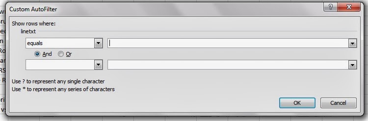 Let's label the blank rows first. Click on large grey down arrow in cell B1 for the filter and choose "Text Filters => Equals".