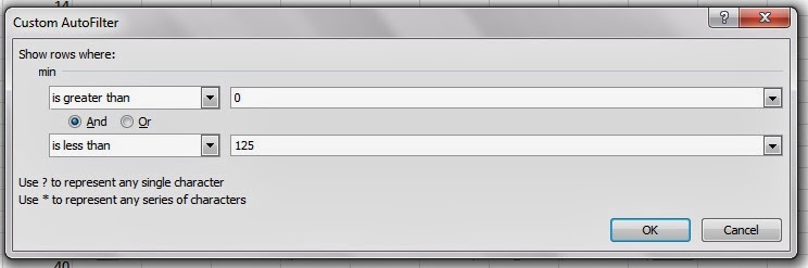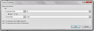 Next, let's assign "match" if minimum (column D) fall between 1-124. Filter on column D.