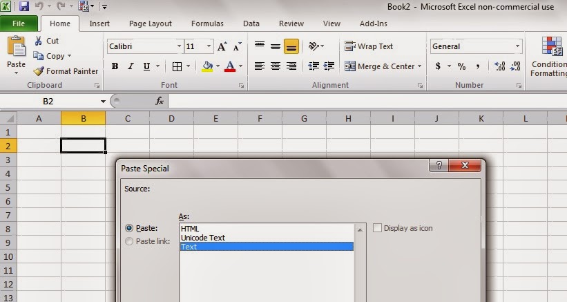 b. Paste Special (right-click) and choose as "Text" in your spreadsheet (I usually start in