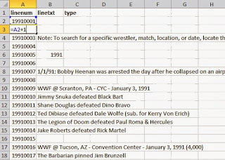 I label my first line of text with a number (typically in the form of YYYY0001 so in this case the first line is 19910001).