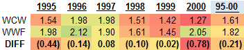 Recently, as part of the Dave Meltzer WWF PPV Star Analysis Project, I refreshed my Overly Complicated ELO Theorem (OCELOT) ratings using Cagematch results 1963-2013 with a simplified k-value system.