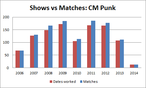 Astute Observers may be able to correlate specific gains and drops with CM Punk's heel/face status along with which titles he was competing for.