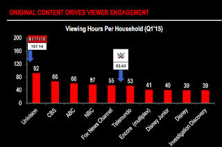 The limited guidance that WWE was willing to share for the WWE Network in 2016 was generalizing the domestic growth trends for Netflix’s streaming service (21.5% from Q3’10 to Q3’15). Netflix was mentioned eleven times during the conference call and Barrios is always quick to point out that WWE has been intently studying all subscription services (and not just video-on-demand players).